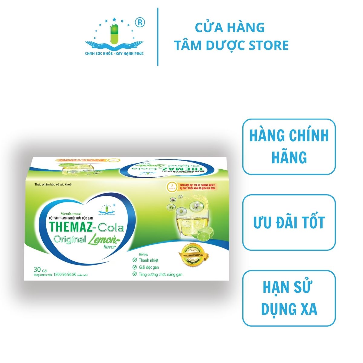 Themaz Cola Original Vị Chanh là sản phẩm của thương hiệu Tâm Dược được chiết xuất từ các tinh chất thiên nhiên với các công dụng chính bao gồm: