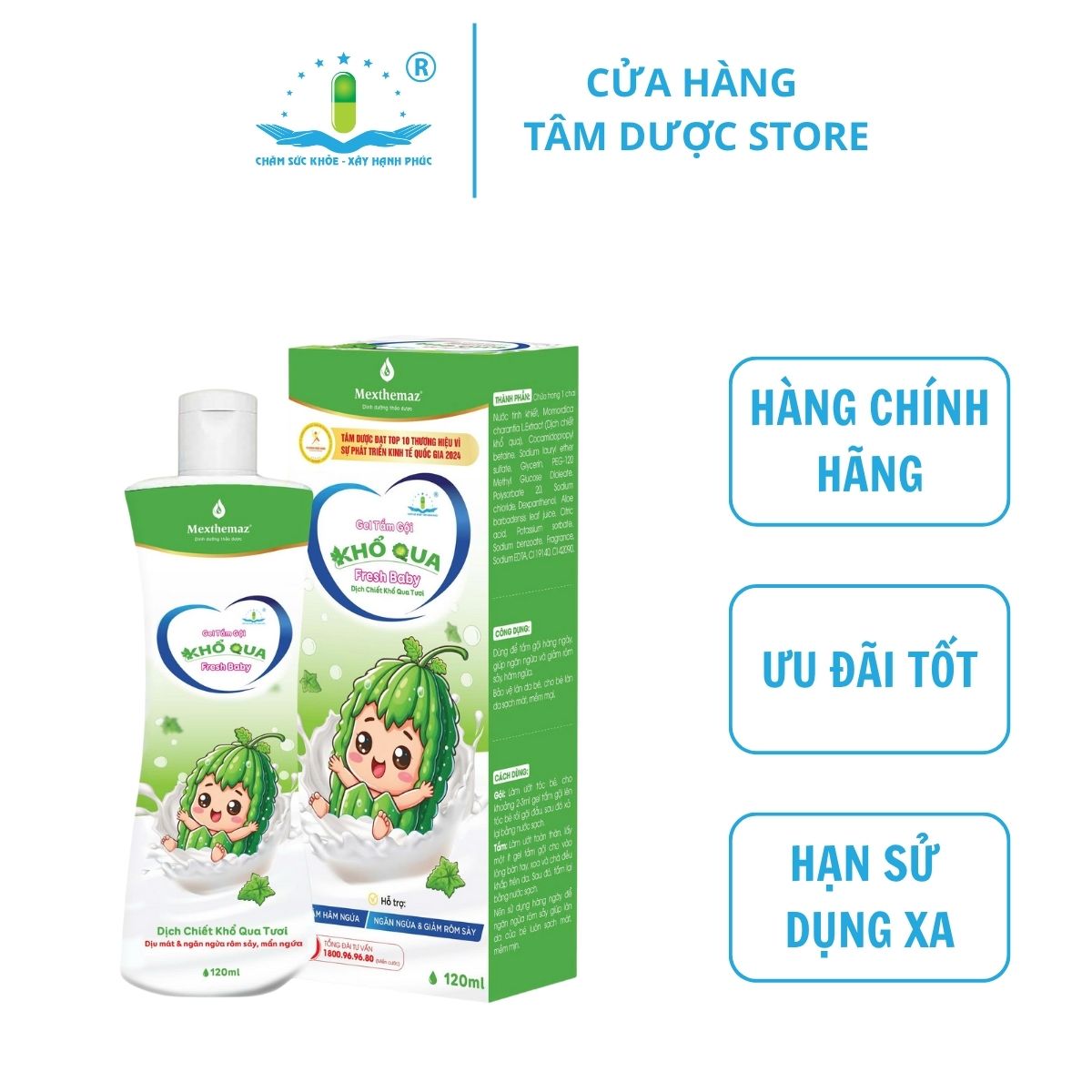 GEL TẮM GỘI KHỔ QUA FRESH BABY dưới sự phân phối của CÔNG TY CỔ PHẦN DƯỢC TÂM DƯỢC nay đã có mặt tại hầu hết các nhà thuốc trên toàn quốc và tại các trang thượng mại điện tử uy tín. Tìm mua hàng chính hãng và nhận tư vấn sản phẩm tại: